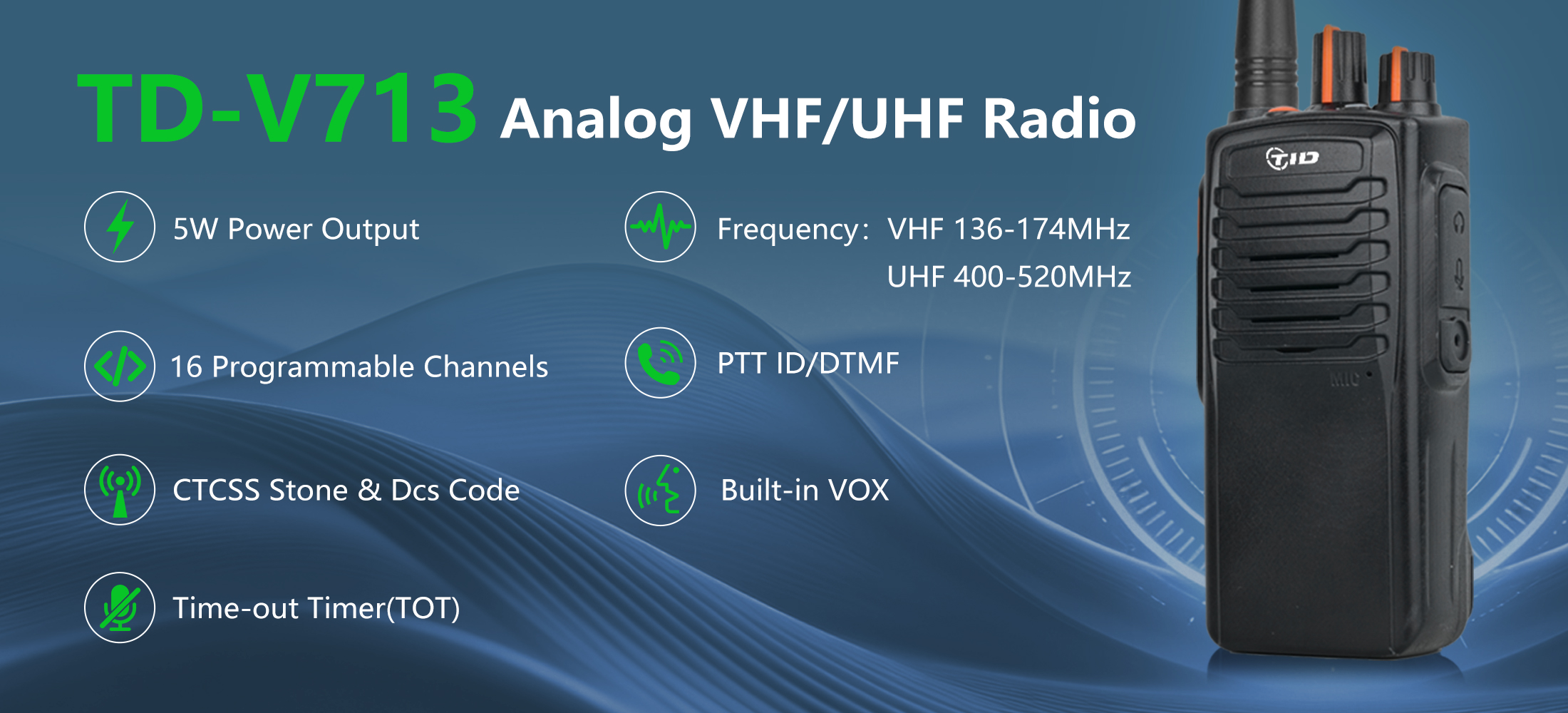 VHF: 136-174MHz,UHF:400-520MHz |
